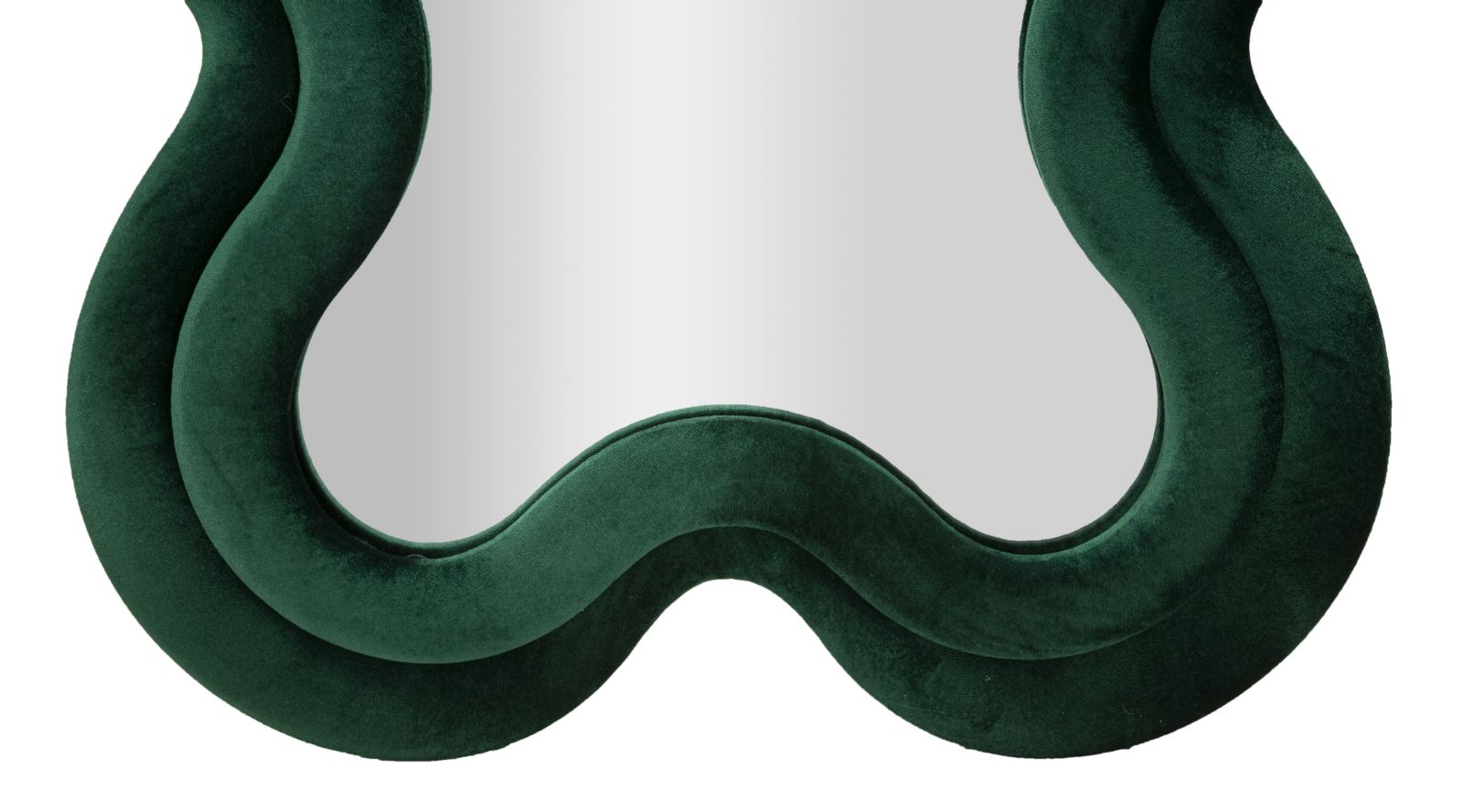 Specchio da parete con cornice in legno rivestita in velluto verde, ideale per un tocco chic e vintage nell'arredamento domestico o in ambienti dal design raffinato.