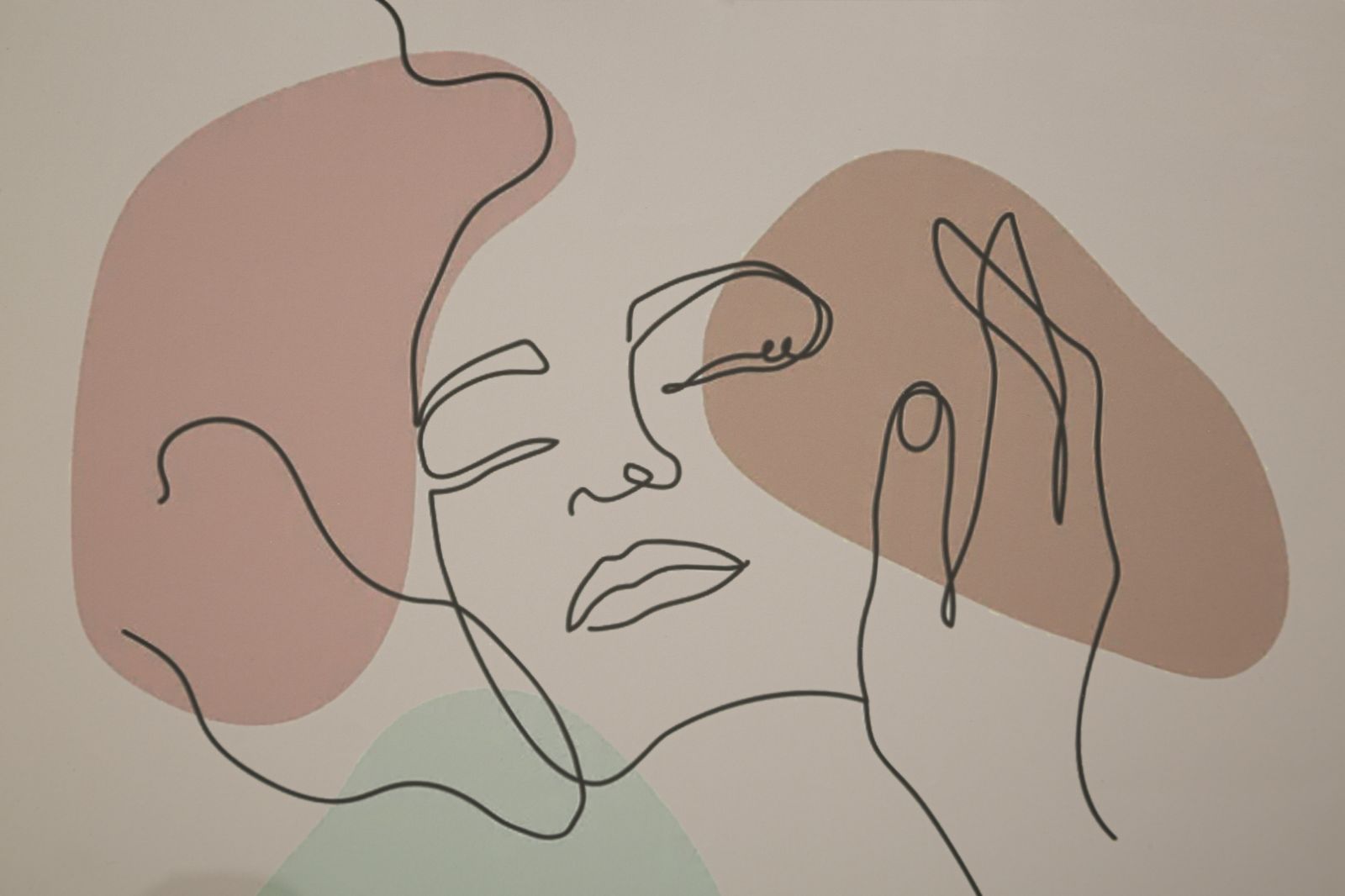 Stampa con cornice dai colori soffusi raffigurante un volto di donna dai toni minimali