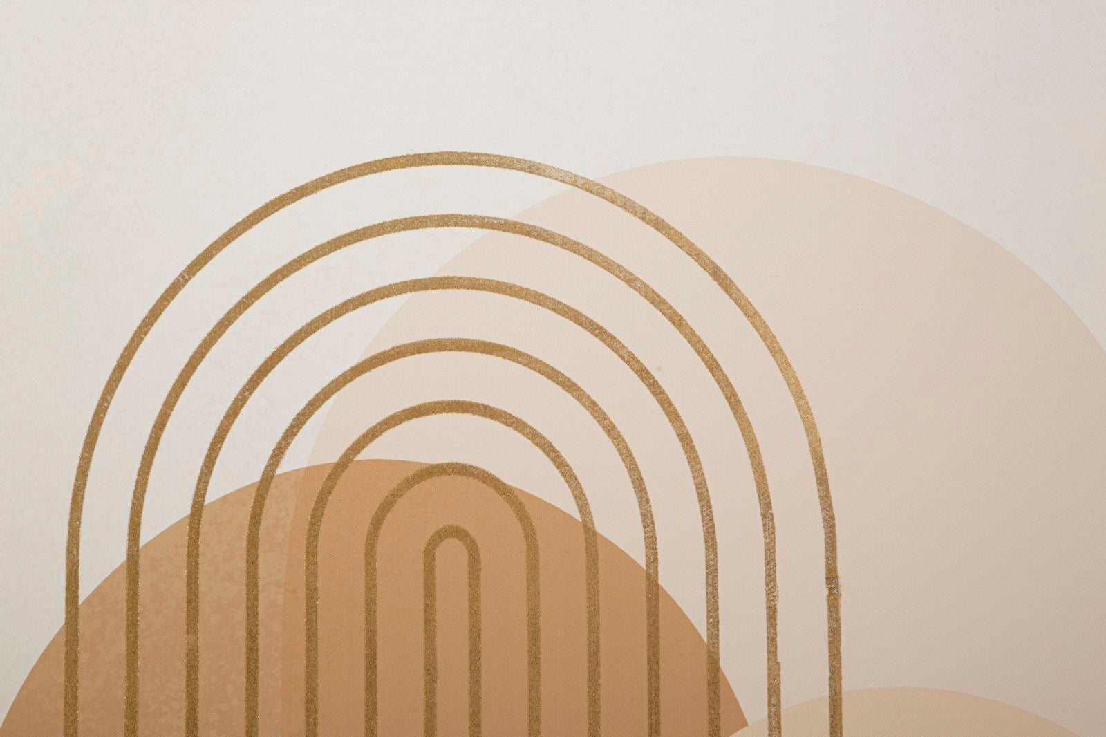 Stampa dipinta su tela con telaio in legno dal design astratto e dai toni caldi impreziositi da decorazioni dorate