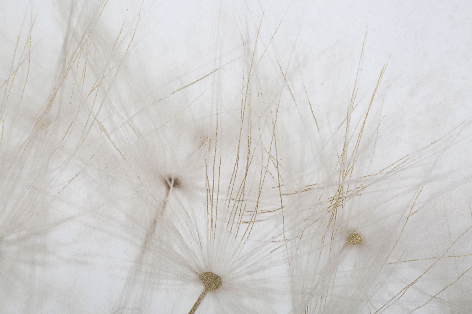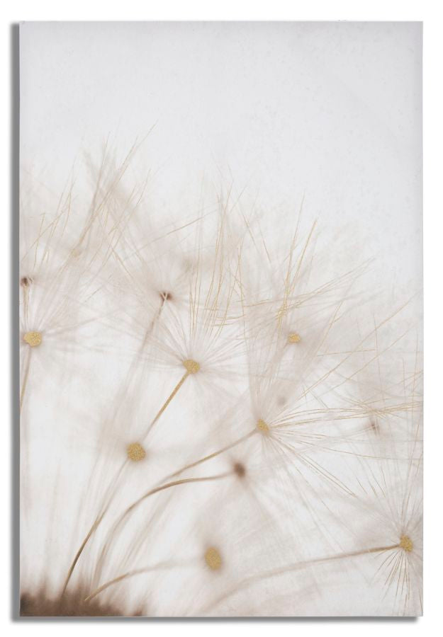 Stampa su tela con telaio in legno dal design floreale. I colori pastello uniti a piccole decorazioni dorate creano un delicato contrasto che dona un tocco di lucentezza ad ogni ambiente.