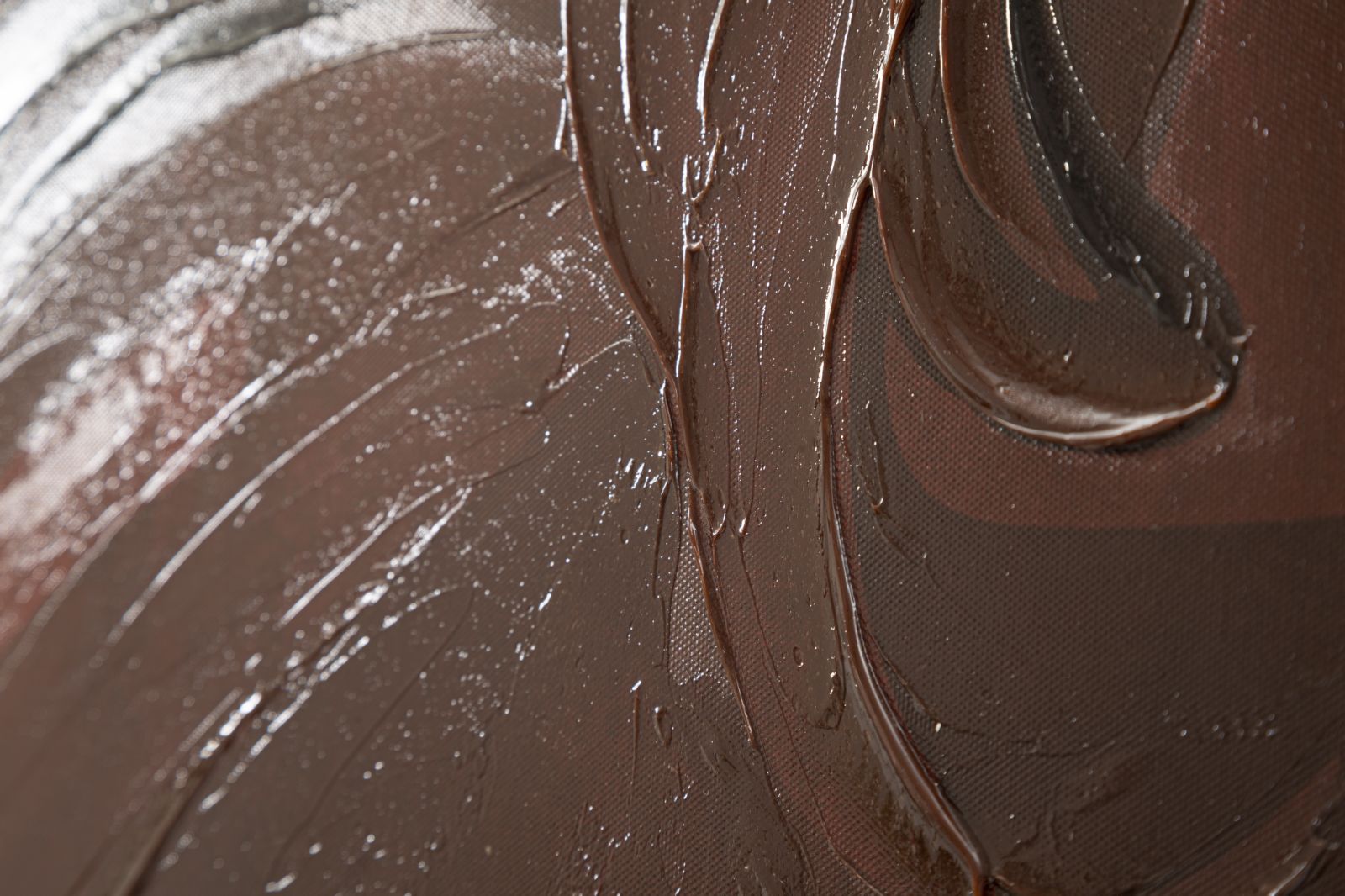 Stampa dipinta su tela con telaio in legno raffigurante una donna con delle foglie sullo sfondo dai toni caldi e accesi