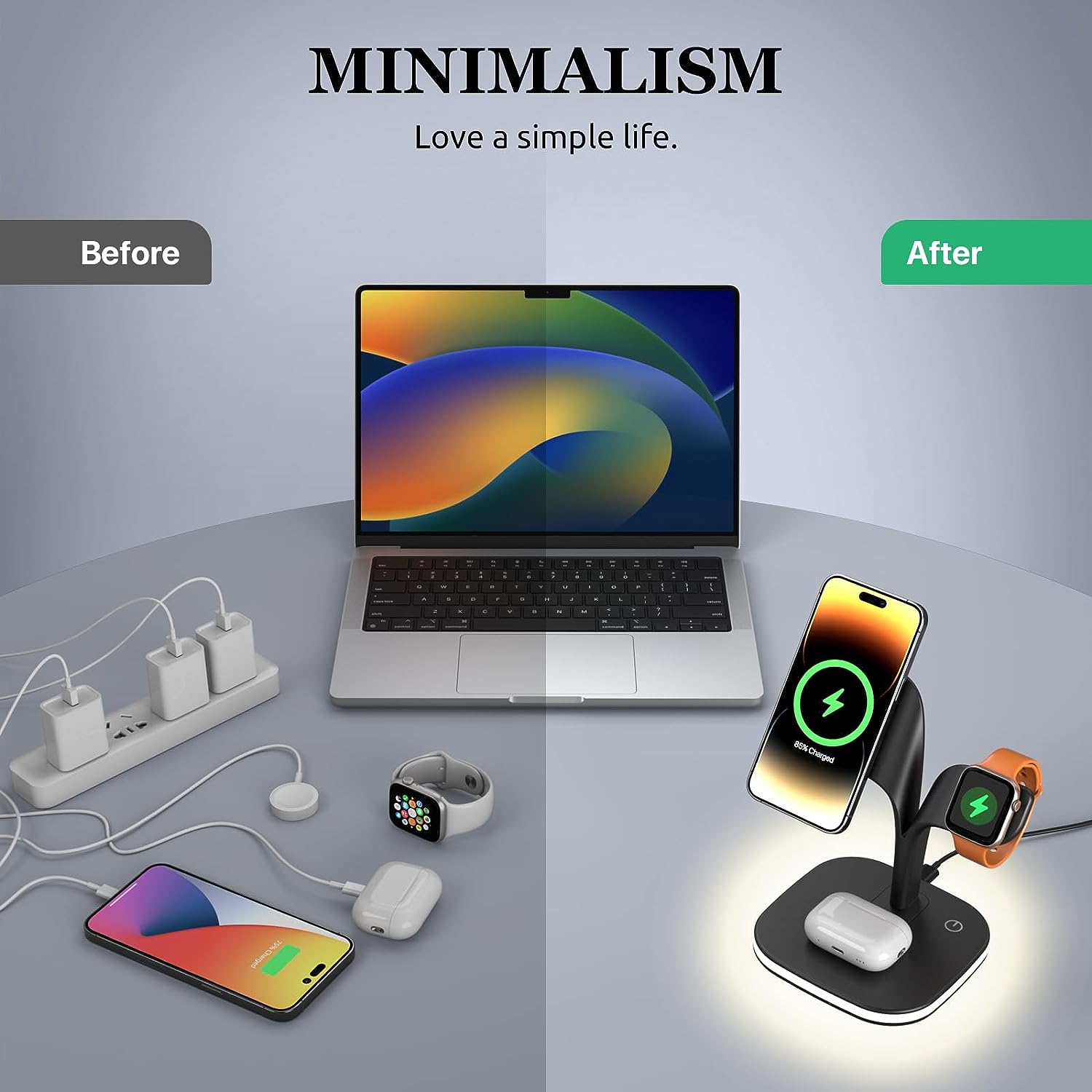 Compatibilité Multi-Appareils Apple:Idéal pour charger simultanément votre iPhone 12/13/14/15, votre Apple Watch et vos AirPods. Une solution tout-en-un pour vos appareils Apple préférés.