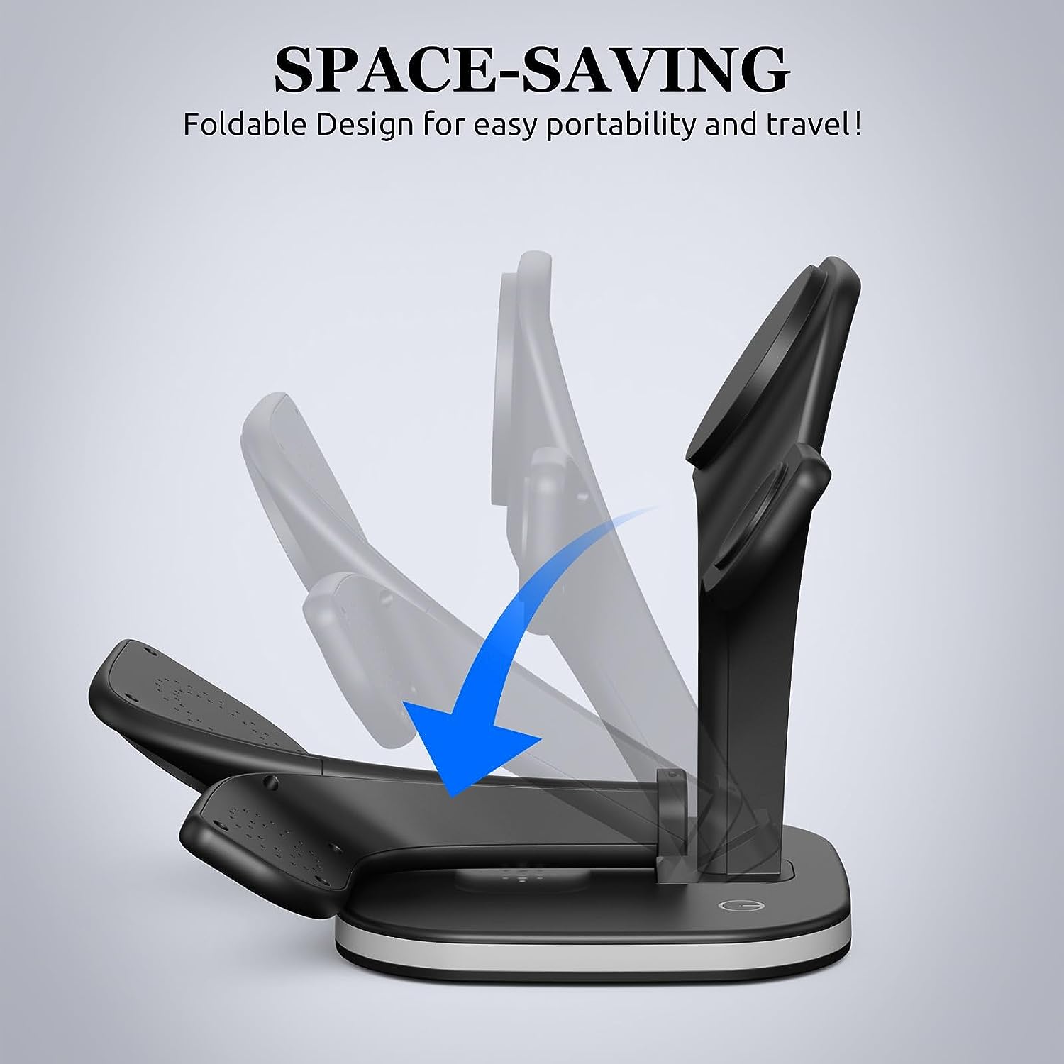 Station de Charge Sans Fil 3 en 1 Magnétique - Compatible iPhone 16/15/14/13/12, Apple Watch 10/9/8/7/6/SE/5/4/3, AirPods 2/3/4/Pro - Charge Rapide et Sécurisée