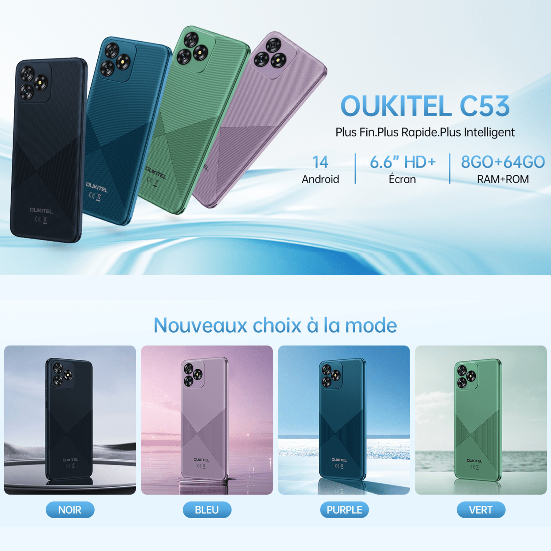 ¡¾T¨¦l¨¦phone Android 14 le plus r¨¦cent¡¿Le t¨¦l¨¦phone C53 lanc¨¦ en 2024 est ¨¦quip¨¦ du syst¨¨me Android 14 le plus r¨¦cent, offrant une performance plus rapide, plus fluide et plus r¨¦active, am¨¦liorant consid¨¦rablement l'exp¨¦rience utilisateur. OUKITEL C53 T¨¦l¨¦phone Android 14 prot¨¦ge la vie priv¨¦e sur tous les aspects et vous offre un service unique et pratique. Le t¨¦l¨¦phone OUKITEL C53 SIM-Free & Unlocked est tr¨¨s fin avec seulement 215g et convient bien ¨¤ la main.