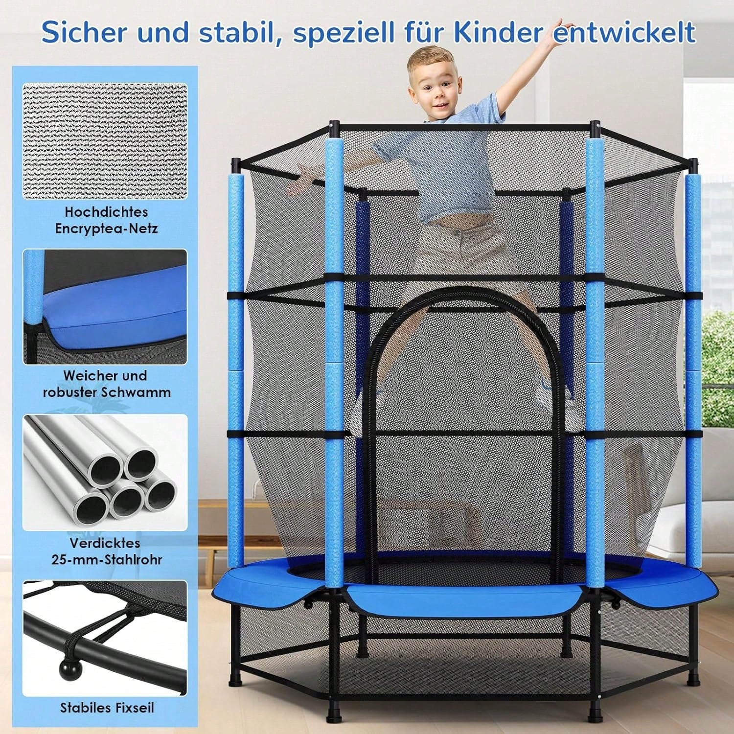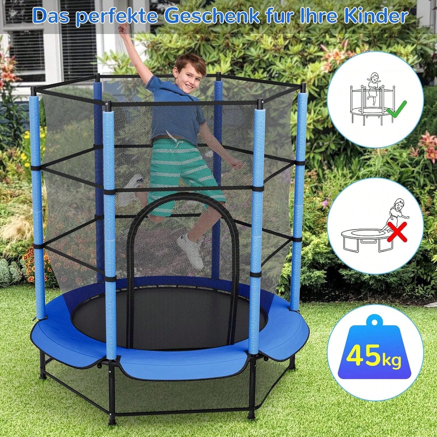 Trampoline pour enfants, trampoline ext¨¦rieur ? 140 cm x 162 cm, trampoline enfant int¨¦rieur avec filet de s¨¦curit¨¦, fermeture ¨¦clair, filet de protection au sol, trampoline de jardin jusqu'¨¤ 45 kg, trampoline enfant
