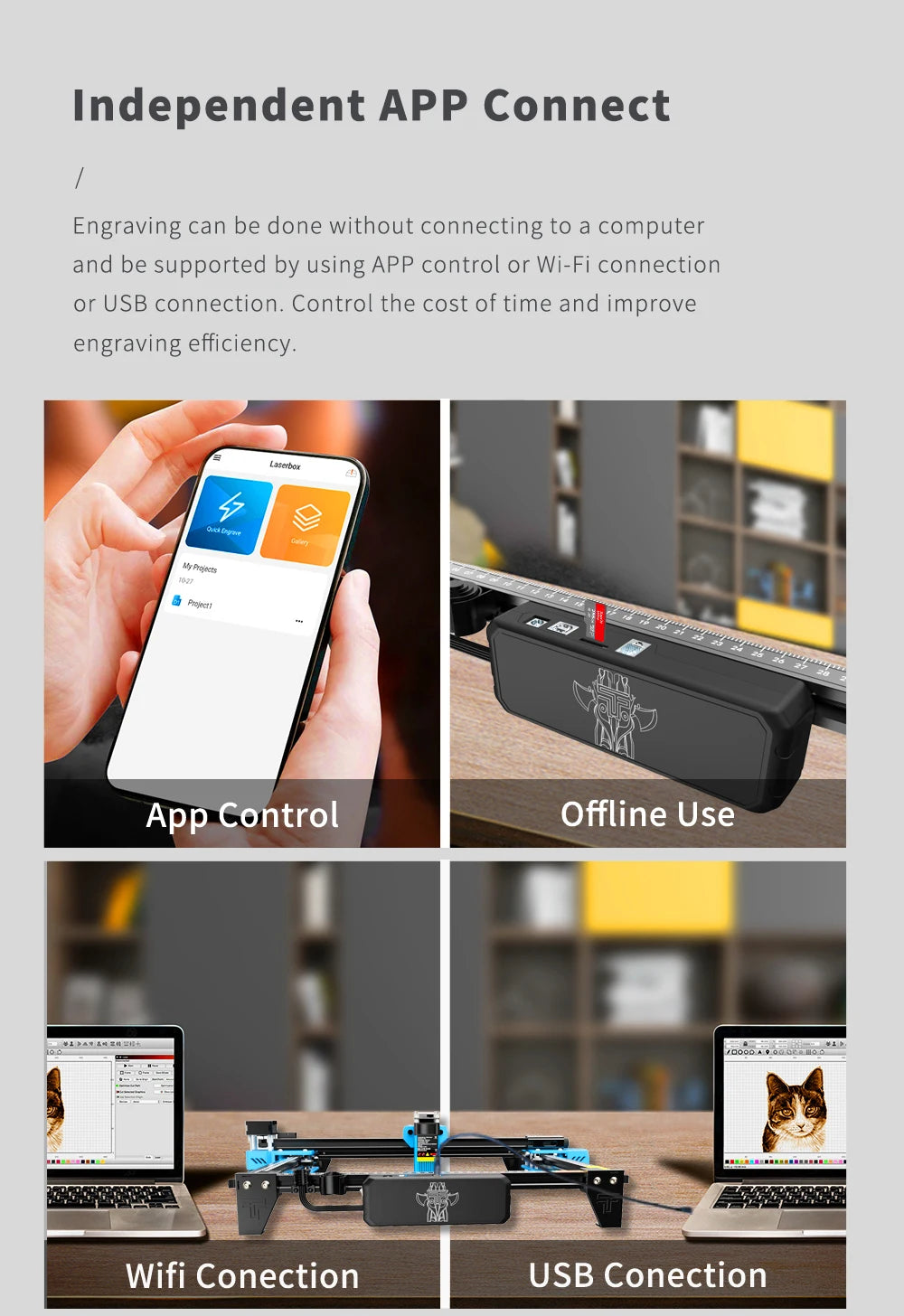 4. Veuillez porter des lunettes laser pendant l'utilisation et éviter de toucher le laser directement avec vos yeux et votre peau! Ne pas utiliser la tête laser directement avec vos mains. Pour assurer la sécurité personnelle, ignifuge et loin de l'environnement des enfants.