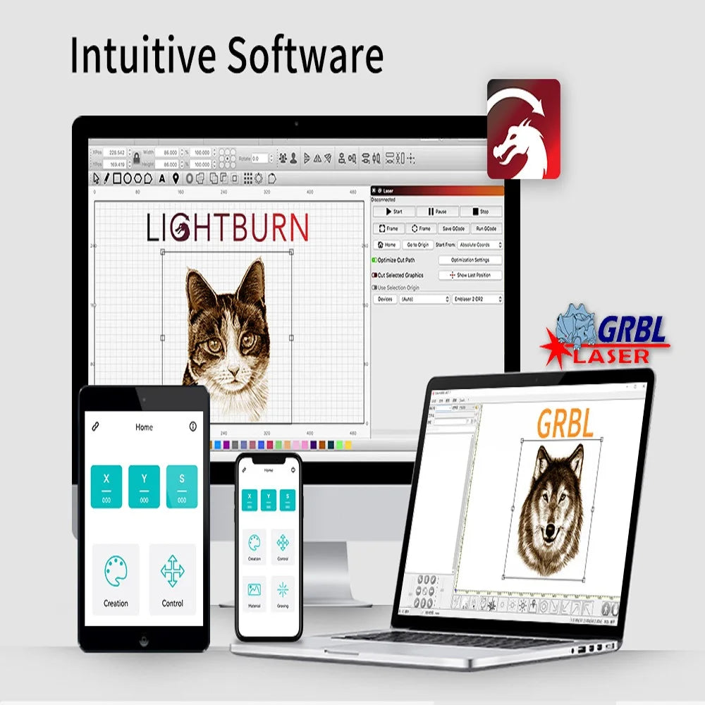 Logiciel de soutien: Lasergrbl (système de Windows), Lightburn (général)