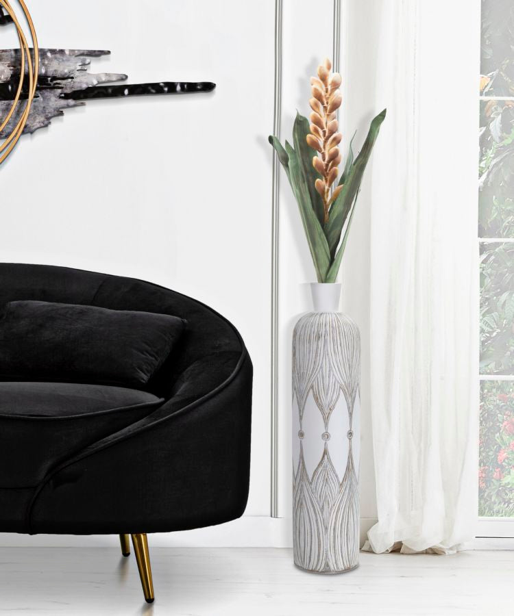 Vaso con eleganti decorazioni intagliate morbide e sinuose.