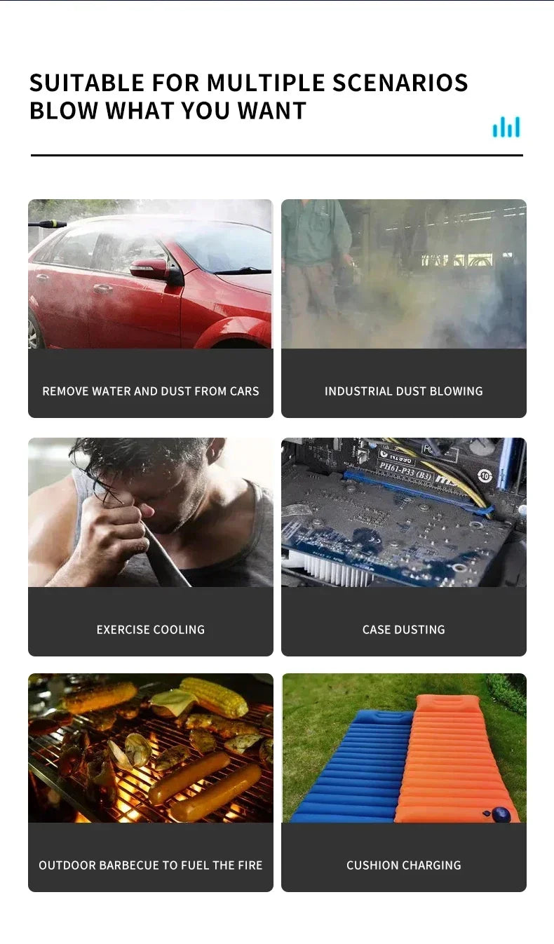 4. Portable et compact: avec une queue compacte et un grand design, il est tr¨¨s portable. Le turbo-ventilateur est compact et tr¨¨s facile ¨¤ transporter et ¨¤ utiliser pendant de longues p¨¦riodes.