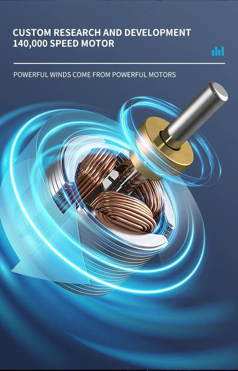 Remarque: Le puissant turbor¨¦acteur X6pro am¨¦lior¨¦ utilise un grand moteur ¨¤ courant continu ¨¤ faible puissance, avec une vitesse maximale de 140,000 tr/min, il produit une vitesse de ventilation de plus de 62 m/s, ¨¦gal ¨¤ 17 ans. Excellent, stable et durable, le temps de charge est tr¨¨s court pendant la machine. L'¨¦limination est hautement prot¨¦g¨¦e contre la charge et sous charge, avec une longue dur¨¦e de vie de la batterie, un peu plus de 4 heures. Avec 217,000 grandes batteries, capacit¨¦ de batterie de 4000mAh, plus durable ¨¤ utiliser! La cote ¨¦nerg¨¦tique est une exp¨¦rience unique