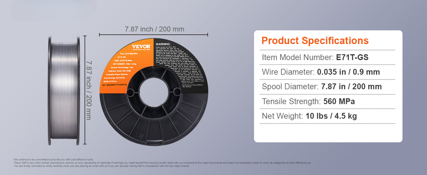 - Fil de Soudage MIG ½Ç Noyau de Flux de 0,9 mm 4,5 kg : Le fil de soudage MIG E71T-GS ½Ç noyau flux de 0,9 mm 4,5 kg convient ½Ç de nombreuses utilisations avec de l'acier au carbone. Compar¹È ½Ç d'autres fils de soudage MIG standard, il combine des niveaux plus ¹Èlev¹Ès de manganõ¹se et de silicium, cr¹Èant des soudures de haute qualit¹È mÄÇme lorsque l'on travaille avec de l'acier sale, huileux ou rouill¹È.