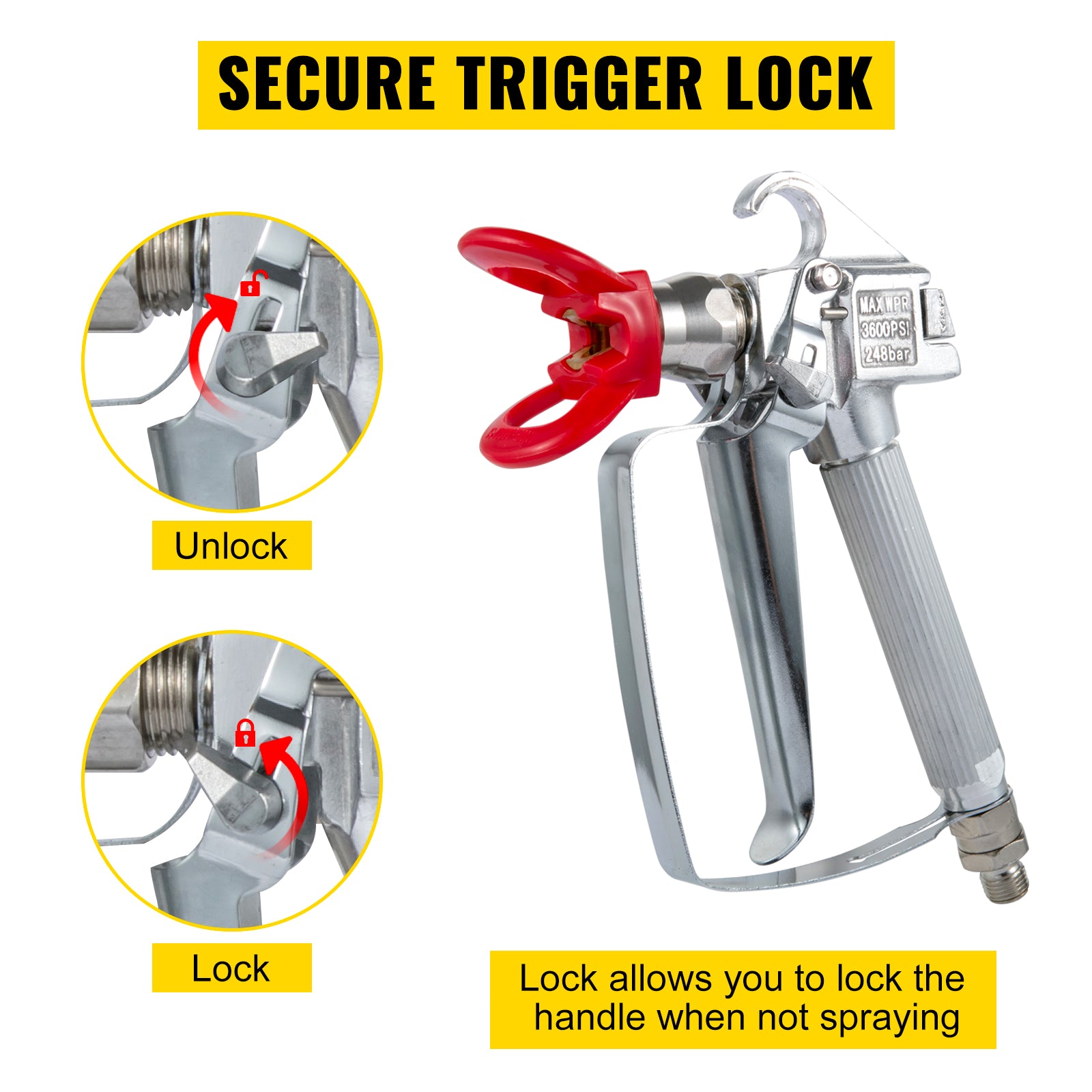 Kit d'accessoires Airless Spray: le kit de peinture?rend la pr¨¦paration du rev¨ºtement de surface plus facile et plus rapide. Il prend en charge la plupart des marques de pulv¨¦risateurs sans air grand public, largement appliqu¨¦es dans la d¨¦coration de la maison, la peinture et la d¨¦coration industrielle de peinture fine. L'ensemble comprend un tuyau de peinture sans air de 50 pieds, un dispositif de pulv¨¦risation sans air, un guide de pointe avec une pointe de 517 et un poteau d'extension de 8 pouces.