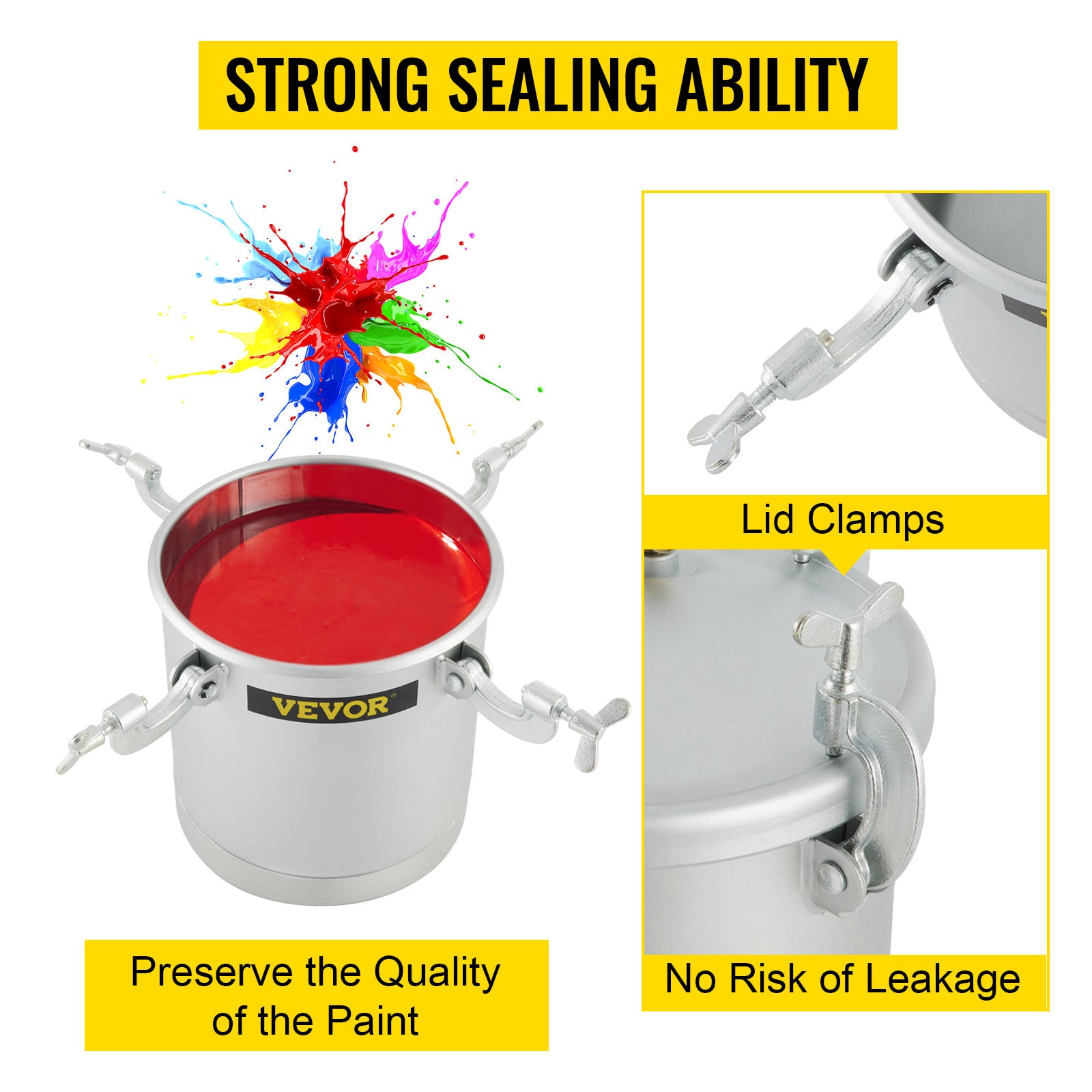 ¡¾Verrouillage rapide et fermeture¡¿: le pot de peinture est dot¨¦ d'un syst¨¨me d'¨¦tanch¨¦it¨¦ ¨¤ verrouillage rapide, d'une fermeture efficace, ¨¦vitant le gaspillage de peinture suppl¨¦mentaire, ¨¦conomisant l'¨¦nergie et prot¨¦geant l'environnement. La couverture en acier peut pr¨¦server la qualit¨¦ de la peinture tout en gardant la couleur des contaminants.
