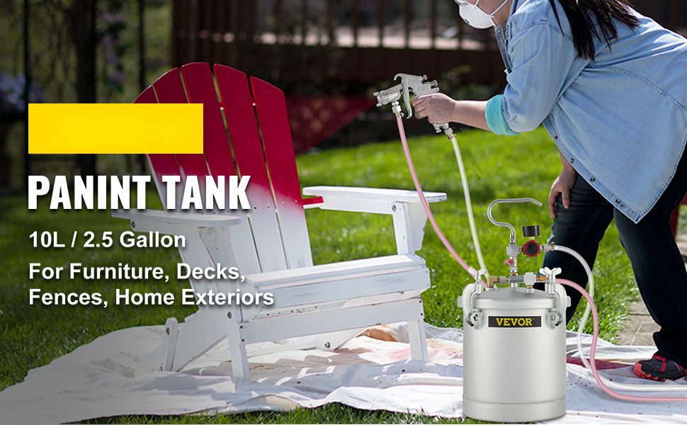 ¡¾Capacit¨¦ du pot de peinture de 10 L¡¿ : avec une capacit¨¦ de 10 L/2,5 gallons, ce r¨¦servoir de peinture ¨¤ alimentation sous pression peut contenir beaucoup de peinture. Il peut ¨ºtre utilis¨¦ pour de grands projets et des applications industrielles. Notre r¨¦servoir de peinture est fabriqu¨¦ en acier au carbone solide, garantissant qu'il est antirouille, r¨¦sistant ¨¤ la corrosion et facile ¨¤ nettoyer. Tous les composants d¨¦licats peuvent ¨ºtre utilis¨¦s pendant longtemps.
