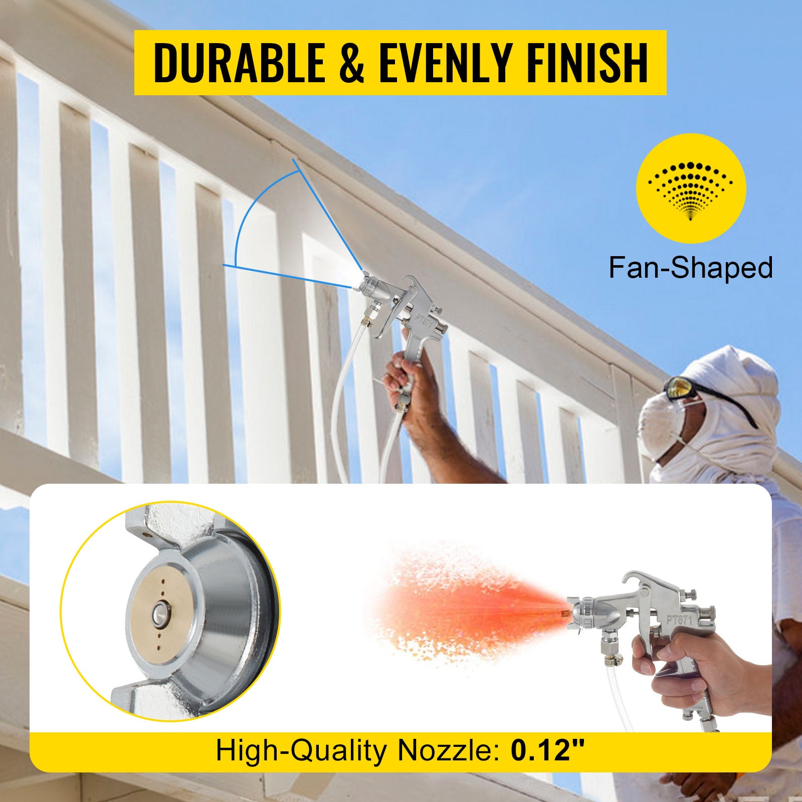 ¡¾Pistolet puissant ¨¤ haute efficacit¨¦¡¿: Le pistolet pulv¨¦risateur en forme d'¨¦ventail peut obtenir un meilleur effet d'atomisation. De plus, le pistolet pulv¨¦risateur en m¨¦tal durable et l'aiguille de haute qualit¨¦ assurent un rev¨ºtement uniforme, lisse et ¨¦tanche. Le tuyau haute pression de 3 m et le tuyau d'air de 3 m prennent en charge les projets longue distance. La puissance de fonctionnement est de 45 ¨¤ 60 PSI.