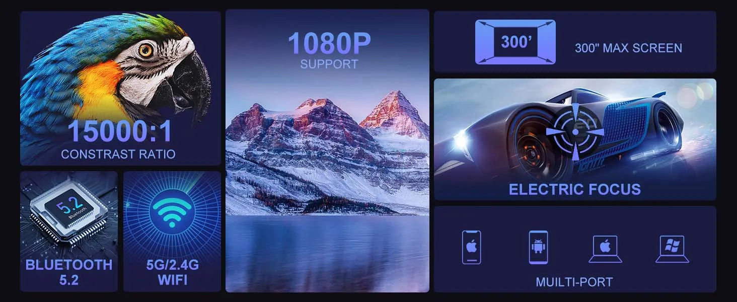 Projecteur de th¨¦atre portable, 18000lumens, WiFi 5G, Bluetooth, prise en charge Full HD, ¨¦cran 1080P, home cin¨¦ma