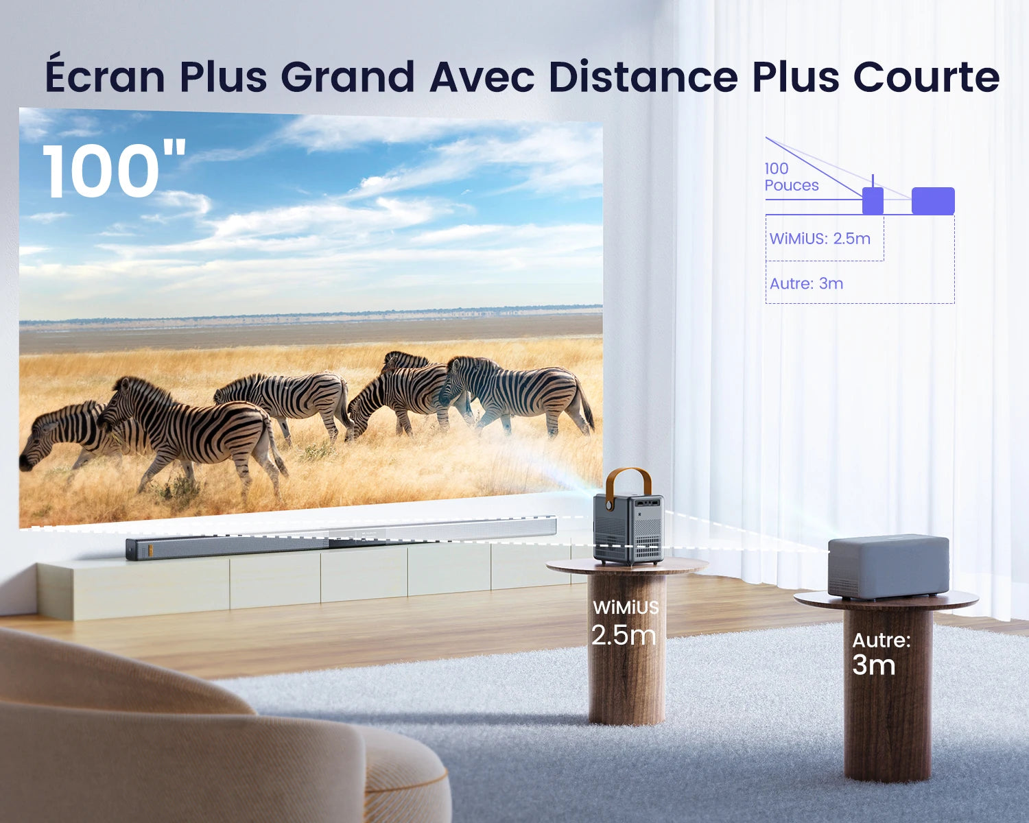 ¡¾Projection en gros plan ultra claire et ¨¦cran g¨¦ant de 100 ''¡¿ Le mini projecteur portable projette un grand ¨¦cran de 100 pouces ¨¤ une distance plus courte et est con?u pour les amateurs de soir¨¦es cin¨¦ma en plein air. Une fonction de zoom de 100% ¨¤ 50% et une taille de projection de 50 ¨¤ 100 pouces offre une exp¨¦rience de visualisation immersive. Offrez-vous une exp¨¦rience illimit¨¦e dans un espace de projection limit¨¦. Les lentilles ¨¤ r¨¦flexion diffuse du projecteur home cin¨¦ma r¨¦duisent la fatigue oculaire pendant la visualisation, ce qui en fait le cadeau parfait pour votre enfant.